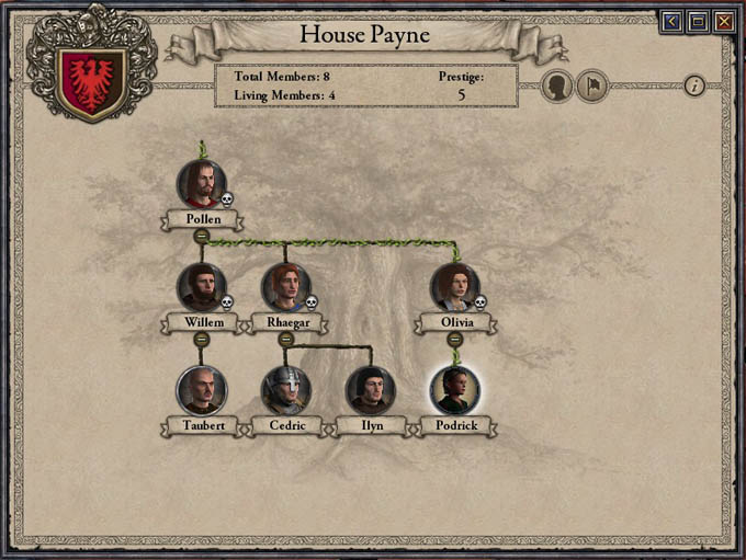 Единственное что мы знаем об этой семье точно – то, что Подрик, дальний родственник был усыновлен Седриком после смерти матери. Также Илин Пейн всего лишь рыцарь в семье Пейнов.